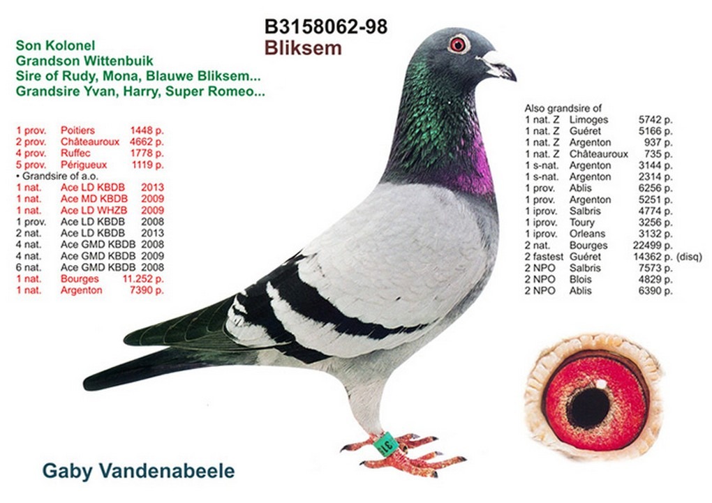 – 5 e Wereldkampioen jonge duiven 1999.